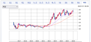 ドル円チャート10年