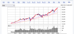 ダウ平均10年チャート